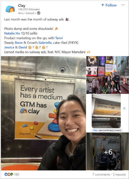 The role of transit advertising has evolved. “What we found is there were millions of dollars of pipeline that referenced our subway ads at some point in their conversation with a member of our team,” shared Karan Parkeh, CFO of Clay.